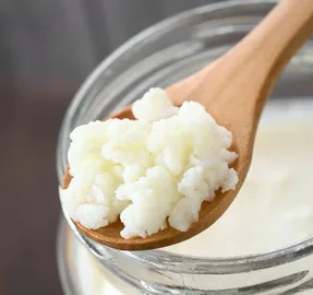 Il termine deriva dall’armeno keif, che significa benessere. Pur non essendo un vero probiotico - non risponde ai requisiti specifici stabiliti dal Ministero della Salute (specie e ceppo batterico identificati e concentrazione minima per la colonizzazione) - il kefir è un ottimo riequilibrante della flora batterica, con proprietà antinfettive e stimolanti il sistema immunitario. Ideale per chi è intollerante al lattosio perché povero in lattosio e ricco di lattasi (l’enzima che metabolizza il lattosio), l’alimento è indicato a tutti, compresi i bambini e gli anziani, perché ricco in calcio, magnesio, aminoacidi e vitamine, l’alimento è particolarmente consigliato a chi soffre di eccessivo accumulo addominale di gas per la sua attività regolatoria delle funzioni intestinali. Il fermento è un portento.